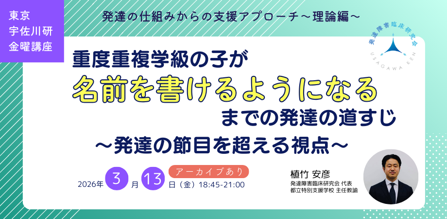 【東京 宇佐川研】発達の仕組みからの支援アプローチ~理論編~「重度重複学級の子が名前を書けるようになるまでの発達の道すじ〜発達の節目を超える視点〜」サロン会員割引申し込みについて