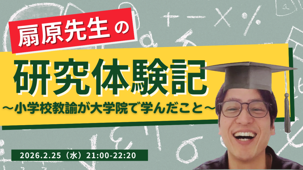 【2/25開催】特別イベント「扇原先生の研究体験記〜小学校教諭が大学院で学んだこと〜」