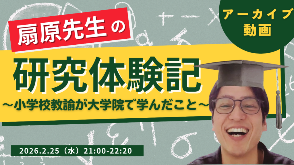 【アーカイブ】特別イベント「扇原先生の研究体験記〜小学校教諭が大学院で学んだこと〜」2026.2.25開催