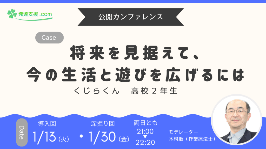 【1/13・30開催】サロン限定公開カンファレンス<全2回>「将来を見据えて、今の生活と遊びを広げるには くじらくん 高校2年生」