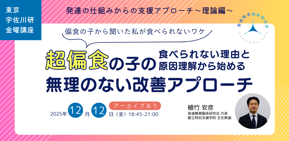 【東京 宇佐川研】発達の仕組みからの支援アプローチ~理論編~「超偏食の子の食べられない理由と原因理解から始める無理のない改善アプローチ」 サロン会員割引申し込みについて